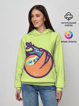 Женское худи / Ленивец спит на ветке рисунок
