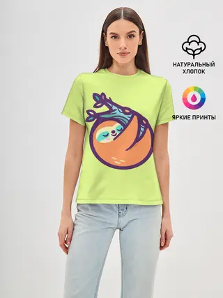 Женская базовая футболка / Ленивец спит на ветке рисунок