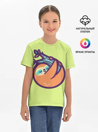 Детская базовая футболка / Ленивец спит на ветке рисунок