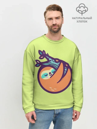 Мужской свитшот базовый / Ленивец спит на ветке рисунок