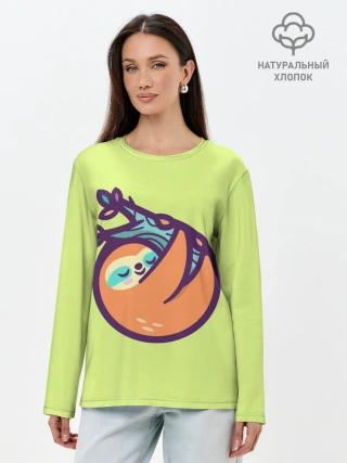 Лонгслив женский. Хлопок / Ленивец спит на ветке рисунок