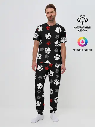 Мужская пижама с брюками / Следы лап