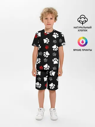 Детская пижама с шортами / Следы лап