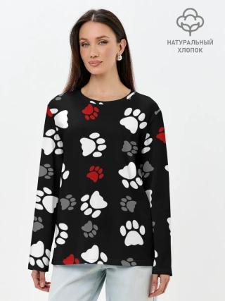 Лонгслив женский. Хлопок / Следы лап