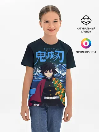 Детская базовая футболка / Гию Томиока Кокушибо Kimetsu no Yaiba