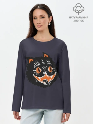 Лонгслив женский. Хлопок / Одержимый кот