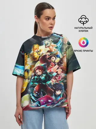 Женская футболка оверсайз / КЛИНОК РАССЕКАЮЩИЙ ДЕМОНОВ ПЕРСОНАЖИ