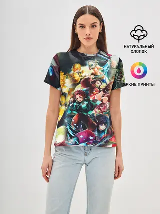 Женская базовая футболка / КЛИНОК РАССЕКАЮЩИЙ ДЕМОНОВ ПЕРСОНАЖИ