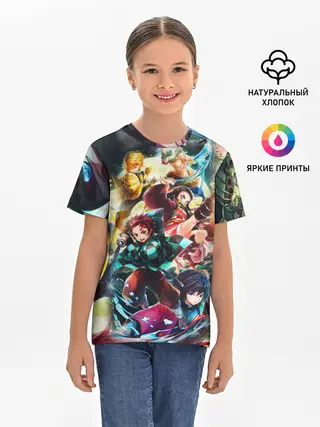 Детская базовая футболка / КЛИНОК РАССЕКАЮЩИЙ ДЕМОНОВ ПЕРСОНАЖИ