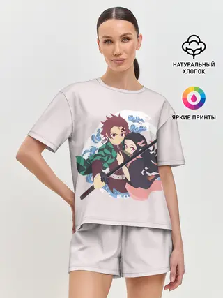 Женская пижама с шортами / Tanjirou & Nezuko