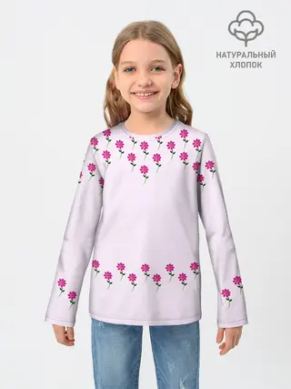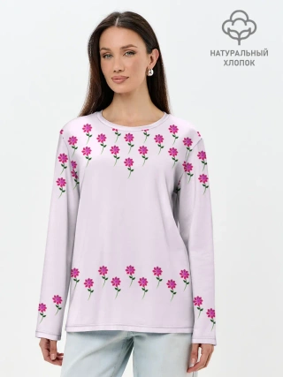 Лонгслив женский. Хлопок / розовые цветы | pink flowers