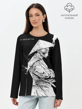 Лонгслив женский. Хлопок / Самурай скелет с трубкой