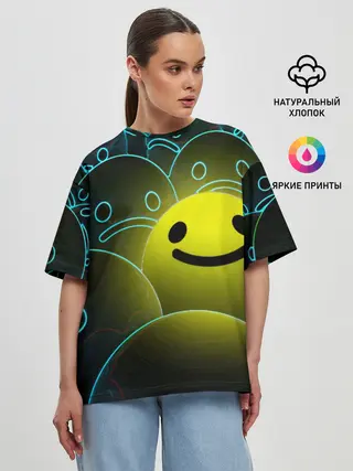 Женская футболка оверсайз / НЕОНОВЫЕ СМАЙЛЫ