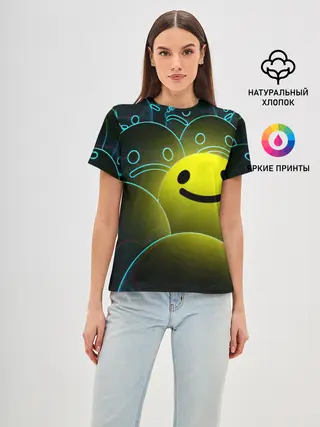 Женская базовая футболка / НЕОНОВЫЕ СМАЙЛЫ