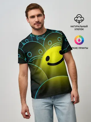 Мужская базовая футболка / НЕОНОВЫЕ СМАЙЛЫ