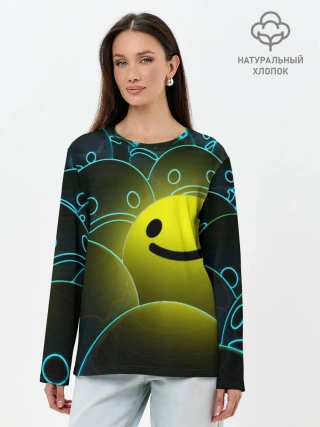 Лонгслив женский. Хлопок / НЕОНОВЫЕ СМАЙЛЫ