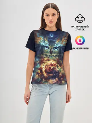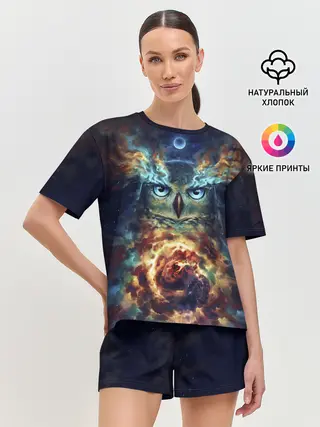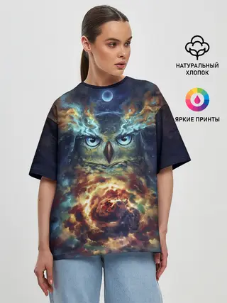 Женская футболка оверсайз / Сова Космос