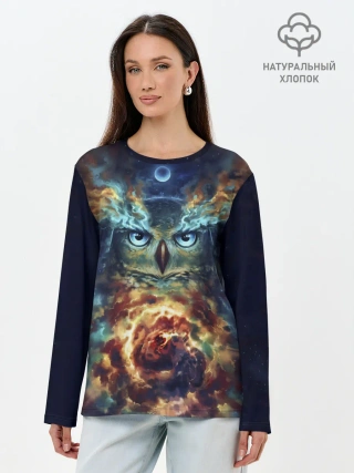Лонгслив женский. Хлопок / Сова Космос