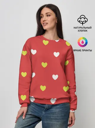 Женский свитшот / Сердечки на красном паттерн