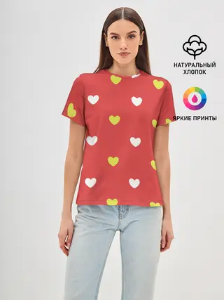 Женская базовая футболка / Сердечки на красном паттерн