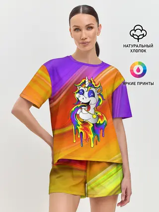 Женская пижама с шортами / Единорог | Unicorn | Rainbow