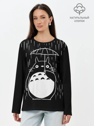 Лонгслив женский. Хлопок / Тоторо прячется от дождя