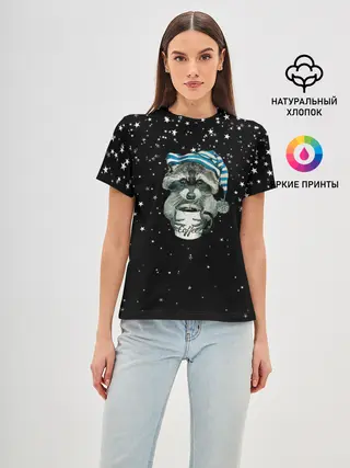 Женская футболка оверсайз / Милый енот