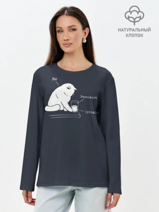 Лонгслив женский. Хлопок / Кот хулиган