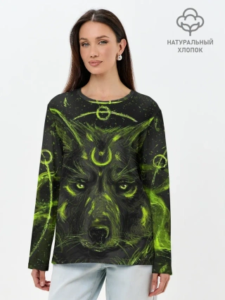 Лонгслив женский. Хлопок / Эзотерический Волк