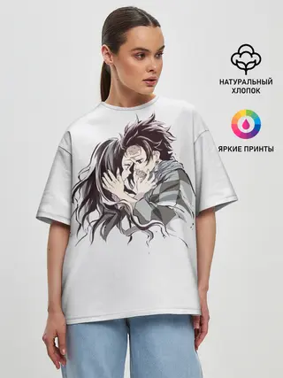 Мужская футболка оверсайз / Tanjirou & Nezuko