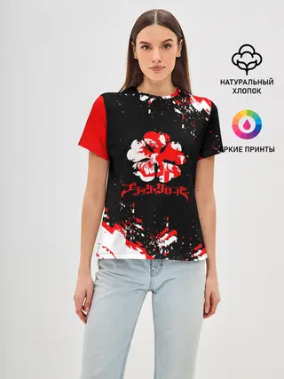 Женская базовая футболка / Черный Клевер с ярким красным куском