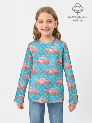 Лонгслив женский. Хлопок / Машинки детский рисунок