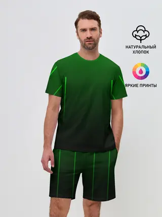 Мужской костюм с шортами / Неоновые линии на градиенте