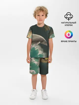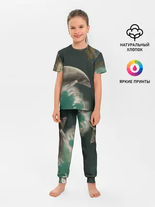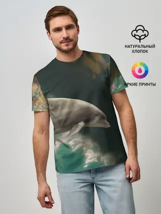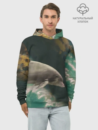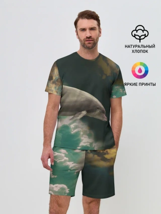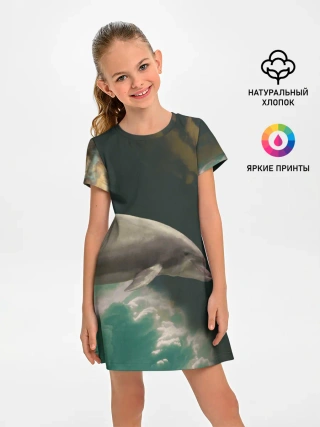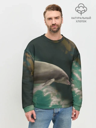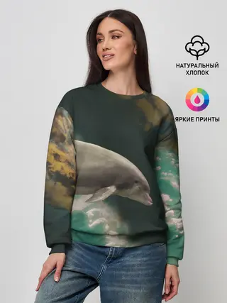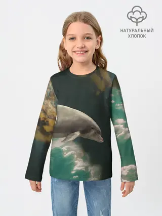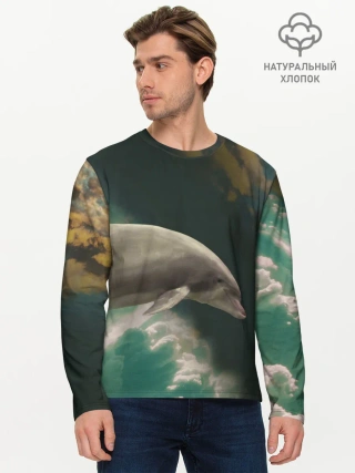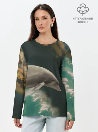 Лонгслив женский. Хлопок / Дельфин в облаках