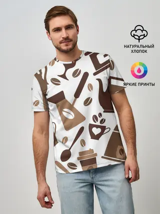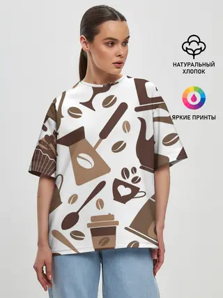 Мужская футболка оверсайз / Узор Кофейные зерна