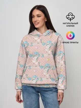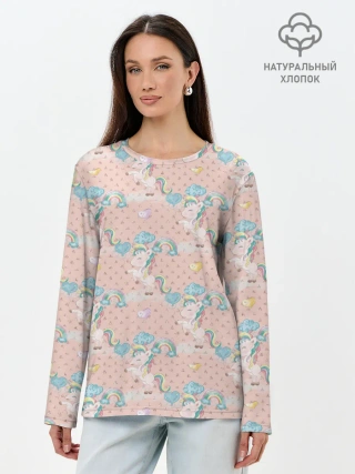 Лонгслив женский. Хлопок / Единороги из паттерна