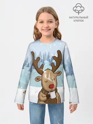 Детский лонгслив / Олень с кружкой