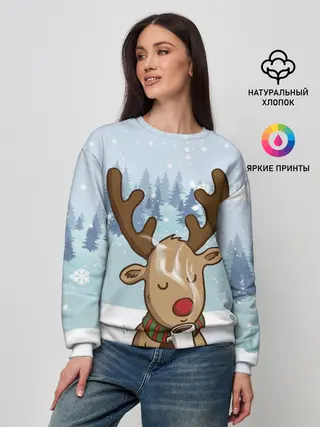 Женский свитшот / Олень с кружкой