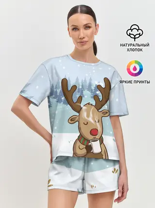 Женская пижама с шортами / Олень с кружкой