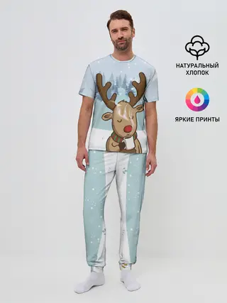 Мужская пижама с брюками / Олень с кружкой