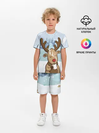 Детская пижама с шортами / Олень с кружкой
