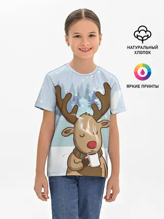 Детская базовая футболка / Олень с кружкой