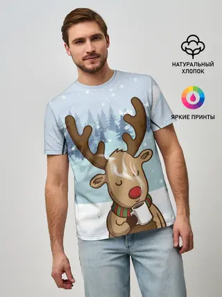 Мужская базовая футболка / Олень с кружкой