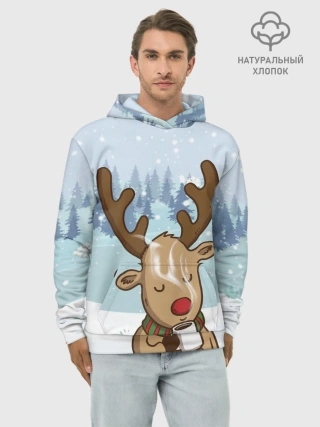 Худи мужской база хлопок / Олень с кружкой