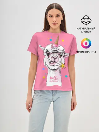 Женская базовая футболка / Hello llamacorn
