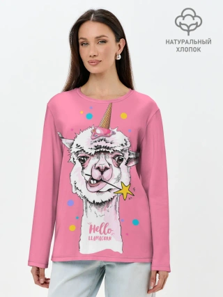 Лонгслив женский. Хлопок / Hello llamacorn