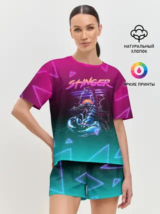 Женская пижама с шортами / РЕТРО СКОРПИОН НЕОН