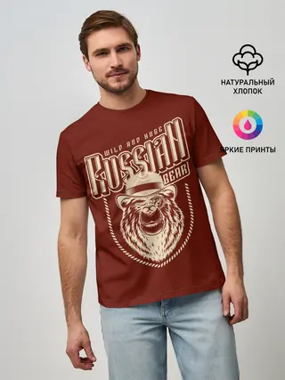 Мужская футболка оверсайз / Русский медведь в шляпе