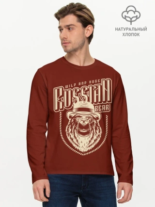 Мужской лонгслив базовый / Русский медведь в шляпе