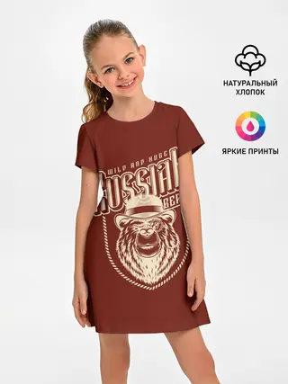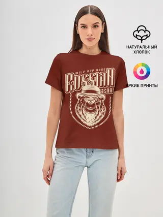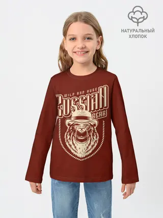 Лонгслив женский. Хлопок / Русский медведь в шляпе